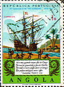 | ANGOLA コンゴ河々口に停泊するガレオン船 ![]() 1572 ウス・ルジ−アダス400年記念 1972 アンゴラ 1972/5/25 発行 |