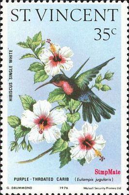 ハチドリ科の仲間 Purple Throted carib ・Eulampis jugularis 白ハイビスカス (Hibiscus single white) |