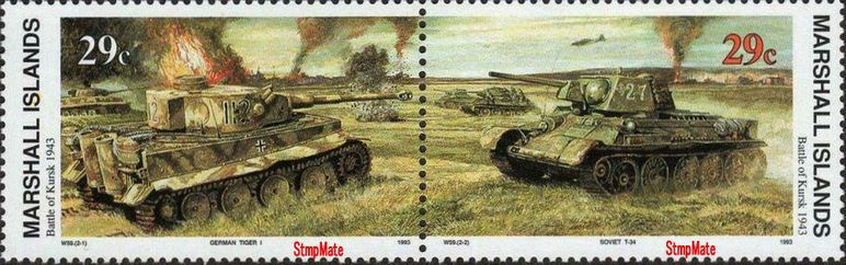 クルスク大戦車戦![]() ドイツ・タイガー戦車とソ連T型戦車の戦い Battle of Kursk 1942 第二次世界大戦50年記念 1992 マーシャル諸島 1992 発行 |