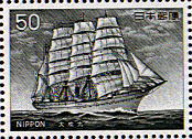 大成丸(東京商船学校・練習線) 明治39年(1906)〜昭和20年10月9日(1945) 大成丸は明治39年に東京商船学校航海科47、48、49期生を中心とする実習生を乗せて第1次遠洋航海に出港した大成丸は,53日かけてオーストラリアに到着し明治40年の元旦をシドニー港で迎えました.この時以来約40年にわたって5164名の若人が大成丸に青春を輝かせ,海の男に成長し、数多くの海員を育んだ練習船でした. 戦時中の大成丸は純白の船体を灰色に塗り替え、全ての帆を撤去して航行していたそうです。もはや殆どの商船が沈められてしまい,学生たちは卒業後に乗るであろうジャンクの訓練をさせられたそうです. 程なく終戦を迎え,大成丸は引揚帰還第1船としての輸送命令を受けて神戸に回航し、昭和20年10月9日,雨に煙る神戸港第五突堤付近で未処理の機雷が爆発,生徒,教員その他46名という死者・行方不明者を出して大成丸は沈みました。 参考〜日本丸(独立行政法人:航海訓練所の所属帆船) 日本丸は1930年(昭和5年)に初代日本丸が建造され現在は横浜港に保存されています。1984年(昭和59年)9月に2代目となる現在の日本丸が就航しました。「太平洋の白鳥」と呼ばれています。