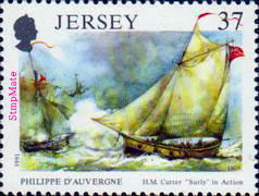 サーリー号の戦い![]() HM Cutter "Surly" in Action, 1809 ジャージー 1991/1/22 発行 |