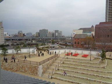 ![]() 尼崎城の天守閣5Fから北方の眺望、尼崎城跡公園と阪神電車尼崎駅 |