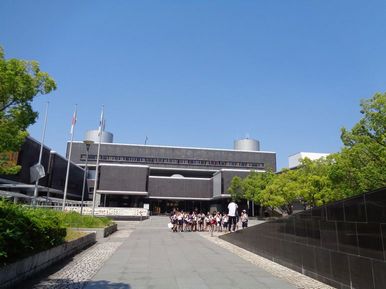 ![]() 本館前で小学生が記念撮影 |