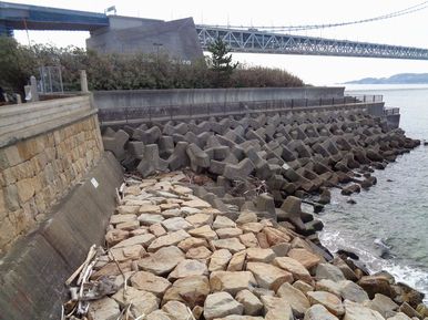 明石藩の舞子砲台跡、向うは 明石海峡大橋