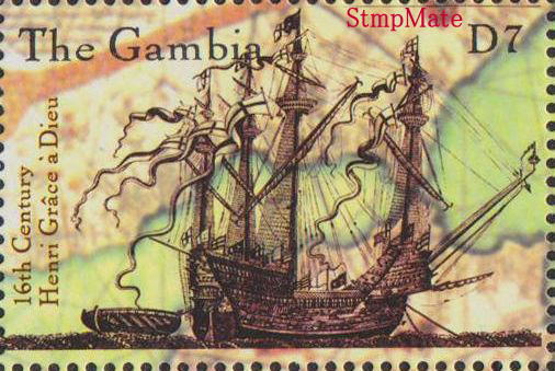 最後尾のマストに縦帆が、他のマストには横帆がありました。
