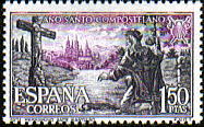| スペインより「聖年」(Ano Santo Compostelano)を記念して1971年に、21種の切手が発行されました。これらの切手には「帆立貝」のマークが右下に描かれています。 |